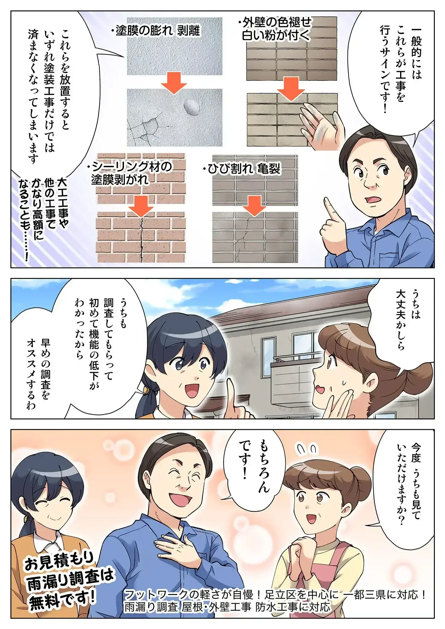 施工後のアフターケアもお任せください。気になる箇所があれば、調査をした上で対応します。
